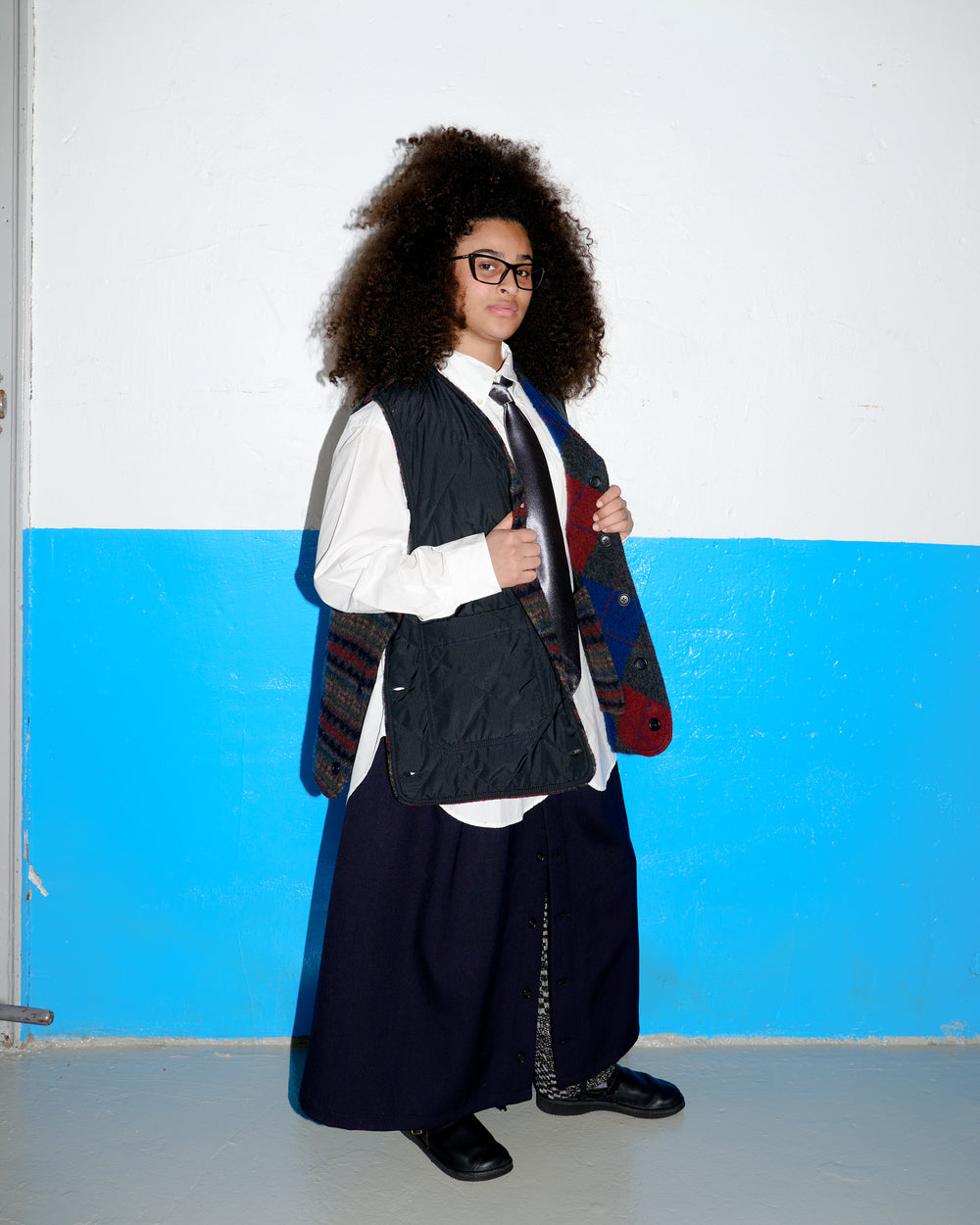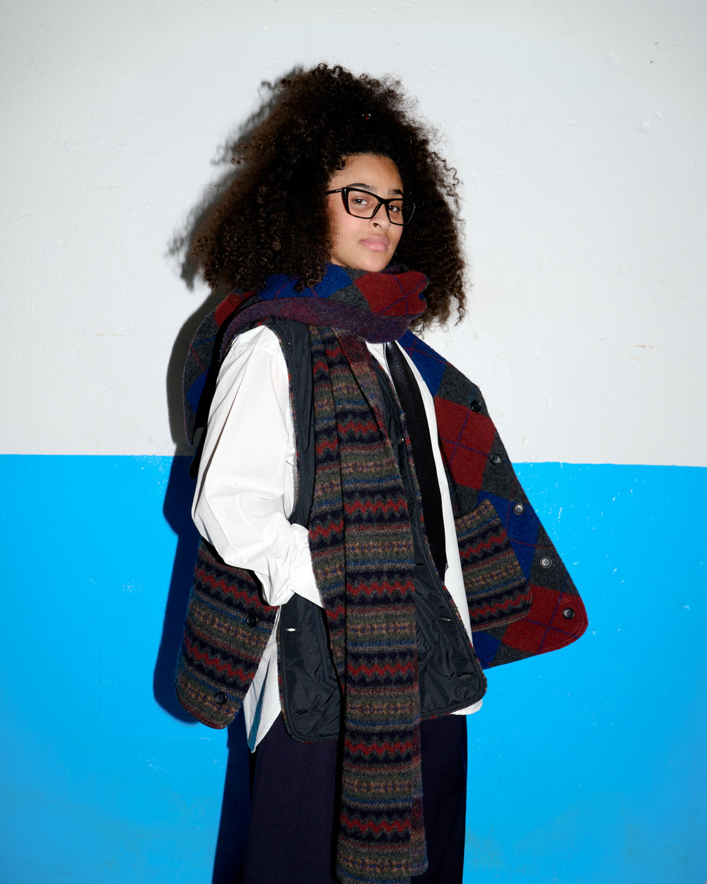 Signature EG silhouettes like the Cardigan Jacket have been combined with a cosmic twist from Howlin'. Custom wool jacquards developed in Scotland have been used with water-repellent ripstop nylon, assembled in Howlin's atelier in Belgium. Garments are reversible, allowing you to switch between knitwear at the front or back of each piece.