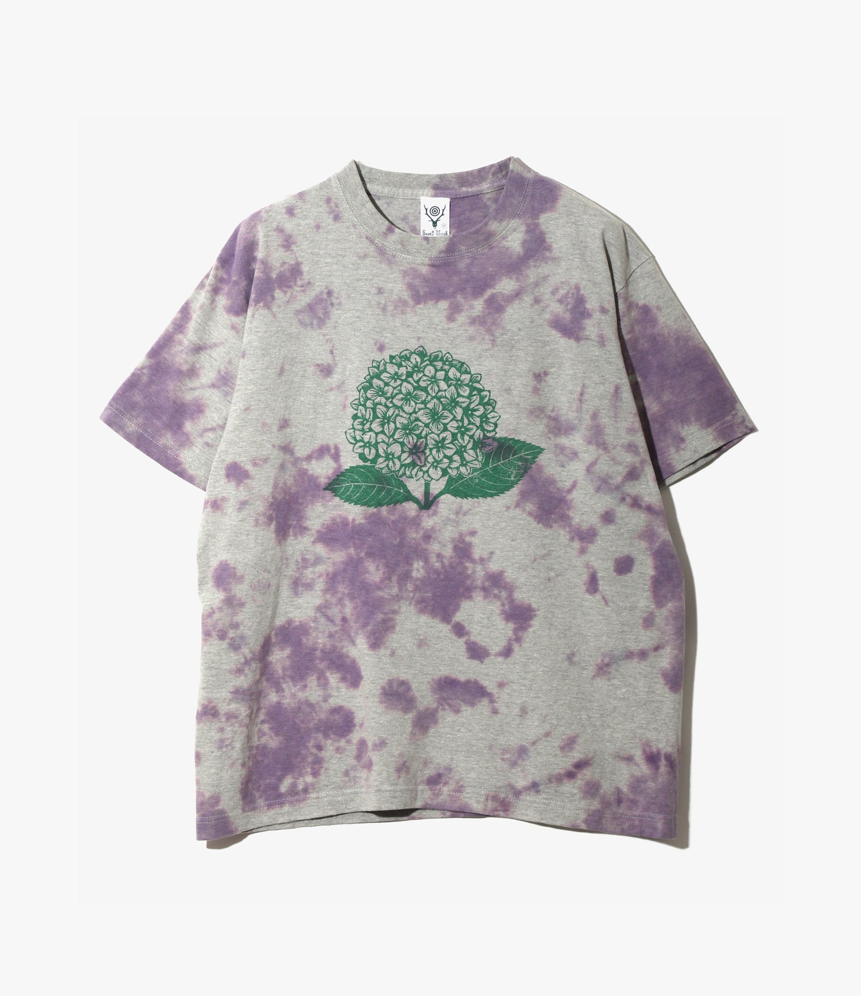 Crew Neck T-Shirt – Purple 'Hydrangea' Print Jersey